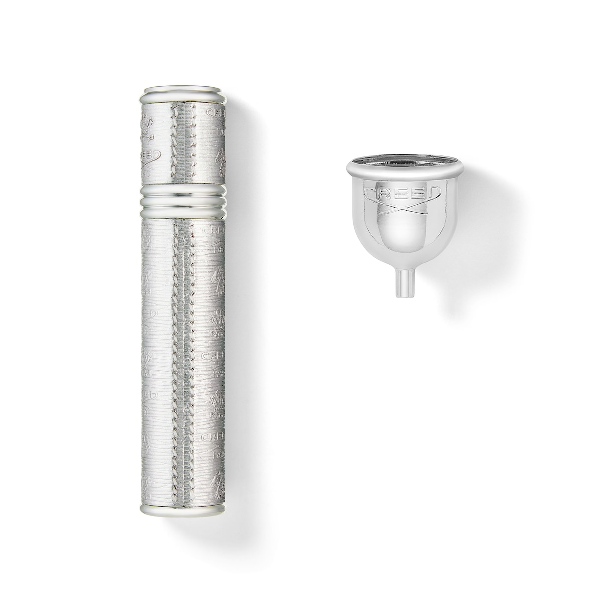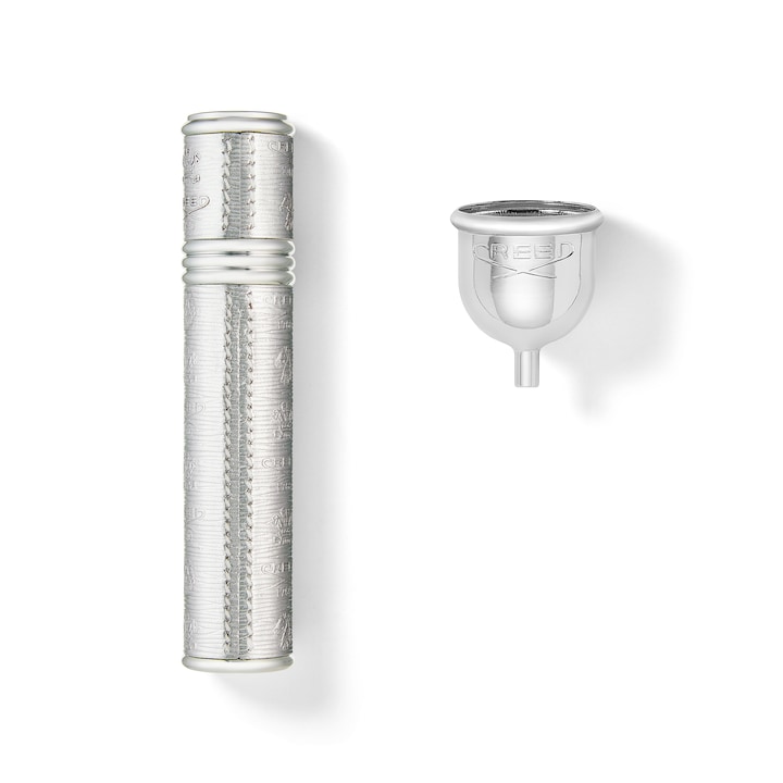 Para onde quer que decida viajar, certifique-se de que o seu eau de parfum mais precioso da The House of Creed esteja sempre ao seu alcance com um luxuoso atomizador cilíndrico de 10 ml feito à mão. Uma verdadeira obra de arte, este companheiro de viagem tem um acabamento em prata e um exterior em couro prateado em relevo que ecoa a rica herança de alfaiataria da casa. Este sumptuoso acessório, e cobiçado objeto de coleção, vem com um decadente funil prateado, permitindo enchê-lo confortavelmente a partir da garrafa de fragrância escolhida.