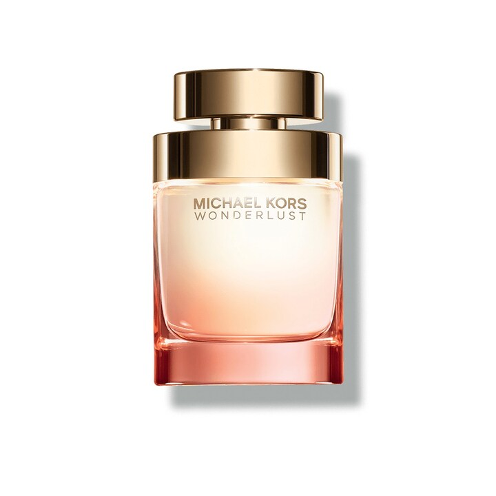 O luxuoso frasco da fragrância Michael Kors Wonderlust com linhas sensuais e acentos dourados brilha como o sol. Encarna a elegância, descontração e o luxo que não devem faltar nas férias de verão.