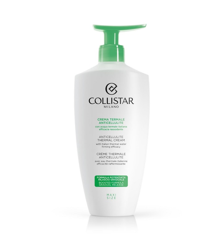 O creme termal anticelulítico é um tratamento reafirmante para o corpo que combina água termal italiana com um complexo de princípios activos vegetais denominado Reprogram System. Esta fórmula actua sobre a pele com celulite visível, acumulações adiposas e perda de firmeza através de um mecanismo que reprograma o metabolismo dos adipócitos e promove a mobilização e eliminação natural de lípidos nos tecidos cutâneos. Estimula a produção de colagénio e elastina para um corpo mais firme e com contornos mais definidos. A água termal, proveniente das Termas Reali di Valdieri e enriquecida com extractos de salva, tonifica a pele e favorece a microcirculação e oxigenação celular. O creme apresenta uma textura fundente, sensorial e sedosa, adequada para massagem, e contém um micropatch natural que liberta gradualmente os ingredientes activos, prolongando a sua acção e garantindo um efeito duradouro. Aplica-se com movimentos de baixo para cima nas zonas a tratar.