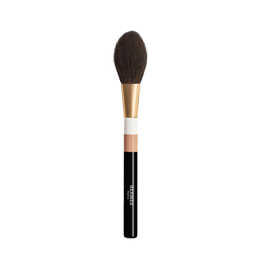 Este objeto precioso com um cabo em três cores em madeira laqueada tem uma pega confortável. As fibras naturais do pelo de cabra são extremamente macias e inseridas à mão por um especialista na arte de fazer pincéis em França.