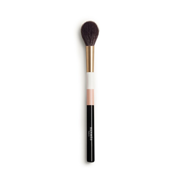 Esse objeto precioso com um cabo em três cores em madeira laqueada tem uma pega confortável. As fibras naturais do pelo de cabra são extremamente macias e inseridas manualmente por um especialista na arte de fazer pincéis em França.