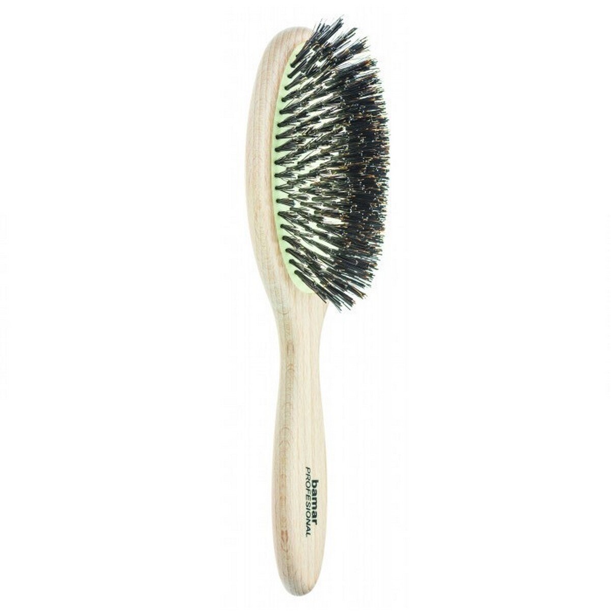 Escova pneumática oval com cabo de madeira de faia natural e cerdas de javali. Tem propriedades hipoalergénicas e antiestáticas.