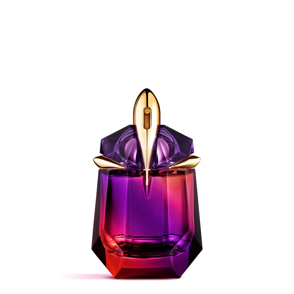 O frasco icónico de Alien encontra-se lacado numa tecnicolor ultra-violeta, que reflete um vermelho profundo e um laranja escarlate.