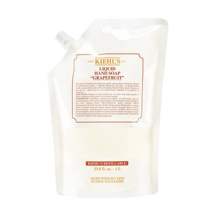 Descubra o sabonete líquido de cuidado para as mãos Grapefruit da Kiehl's com extratos botânicos, que evita a descamação em mãos sujeitas a condições extremas. Os agentes espumantes utilizados nesta fórmula são derivados do coco, sendo eficazes e suaves para a pele, mesmo em mãos danificadas. Entre os seus ingredientes estão: a "Vitamina E" com um elevado teor de antioxidantes e propriedades hidratantes, o "Aloé", um poderoso agente suavizante e hidratante e a "Camomila" com propriedades apaziguantes e suavizantes.