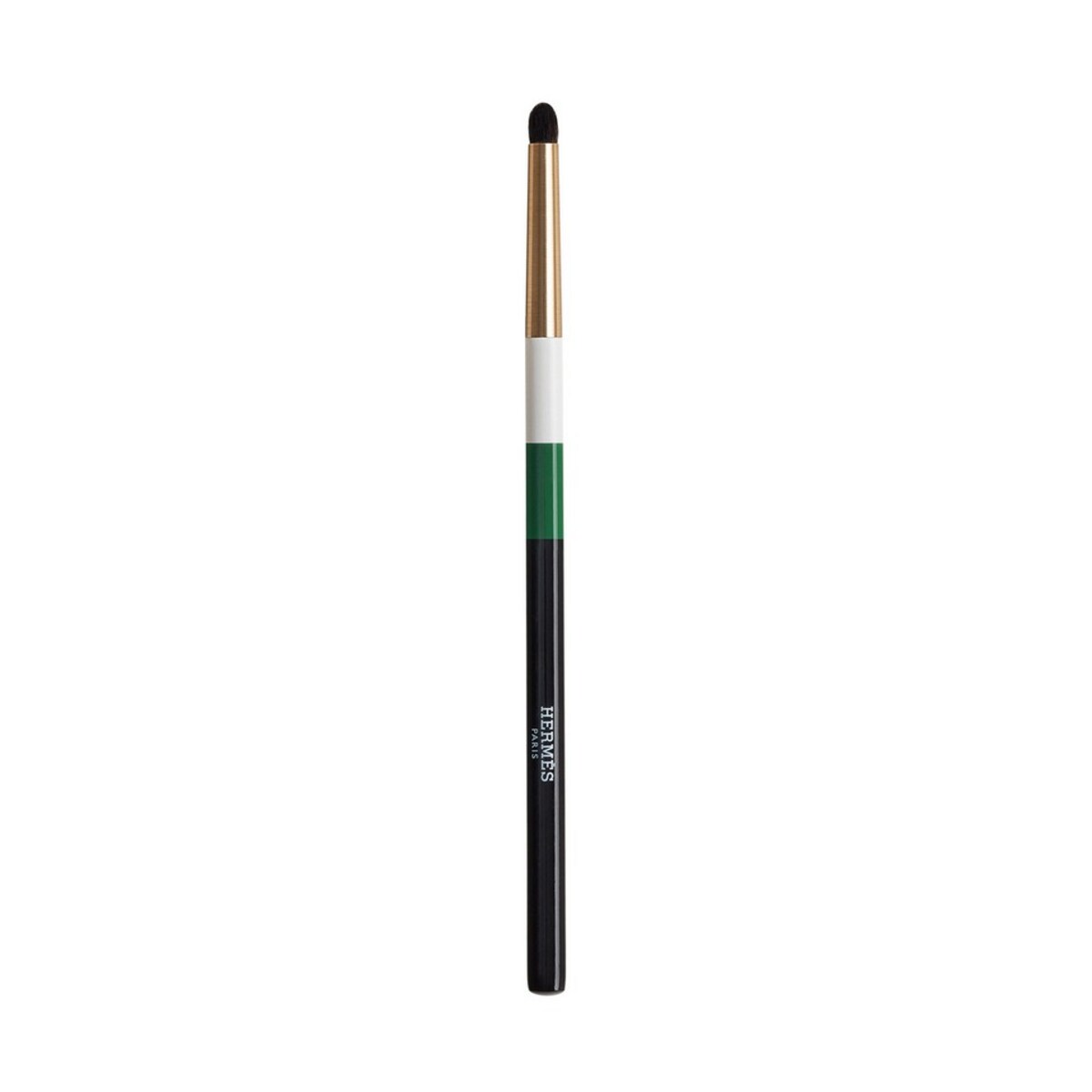 O pincel para esbater de precisão é um pincel de olhos criado por Gregoris Pyrpylis, diretor criativo da Beleza Hermès. Permite espalhar a cor na pálpebra e realça a linha das pestanas para um efeito que é ao mesmo tempo preciso e difuso. O cabo tricolor de madeira lacada é fácil de agarrar. A mistura de fibras sintéticas e de pelo de cabra foi realizada à mão por um criador de pincéis francês.