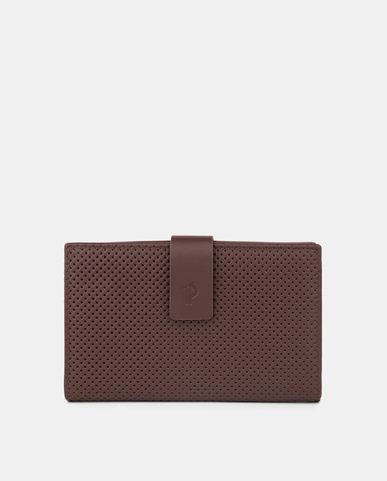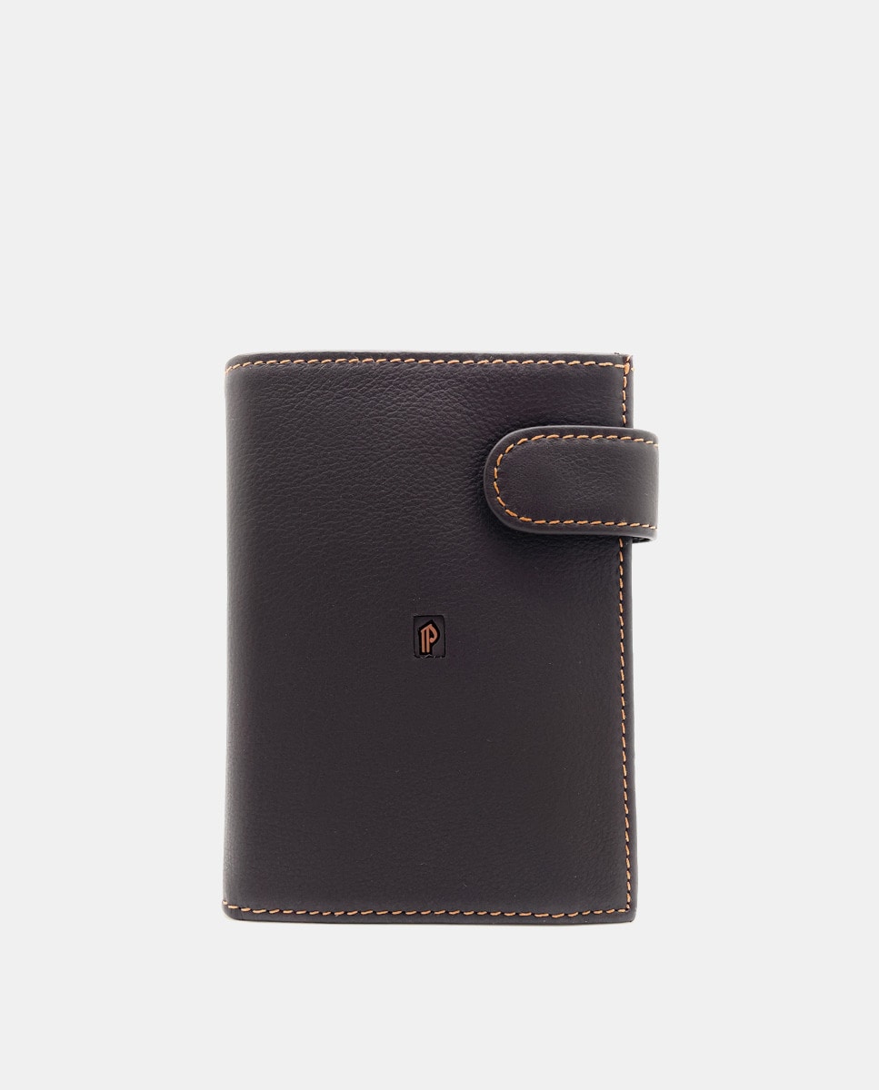 Carteira com Porta-Moedas Interior, Lingueta Exterior e em Pele - Castanho