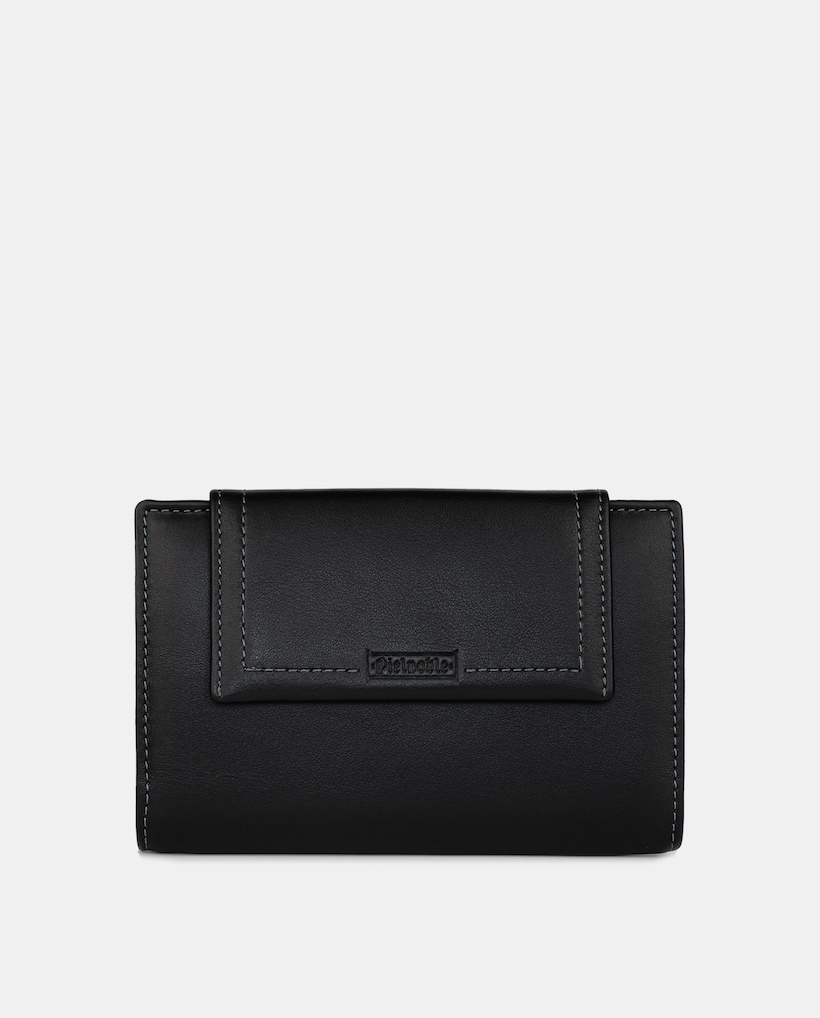 Carteira com Porta-Moedas Interior, Lingueta Exterior e em Pele - Preto