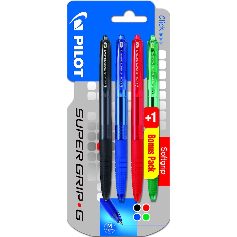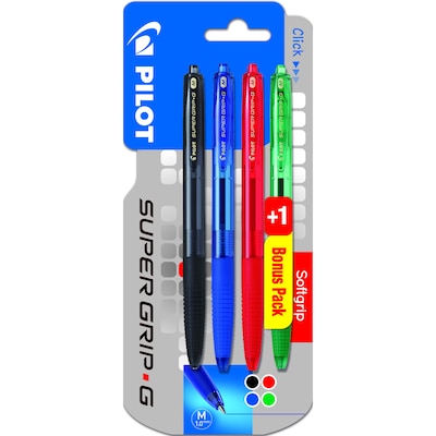 3 Canetas Esferográficas Super Grip - Preto / Azul / Vermelho + Verde Grátis