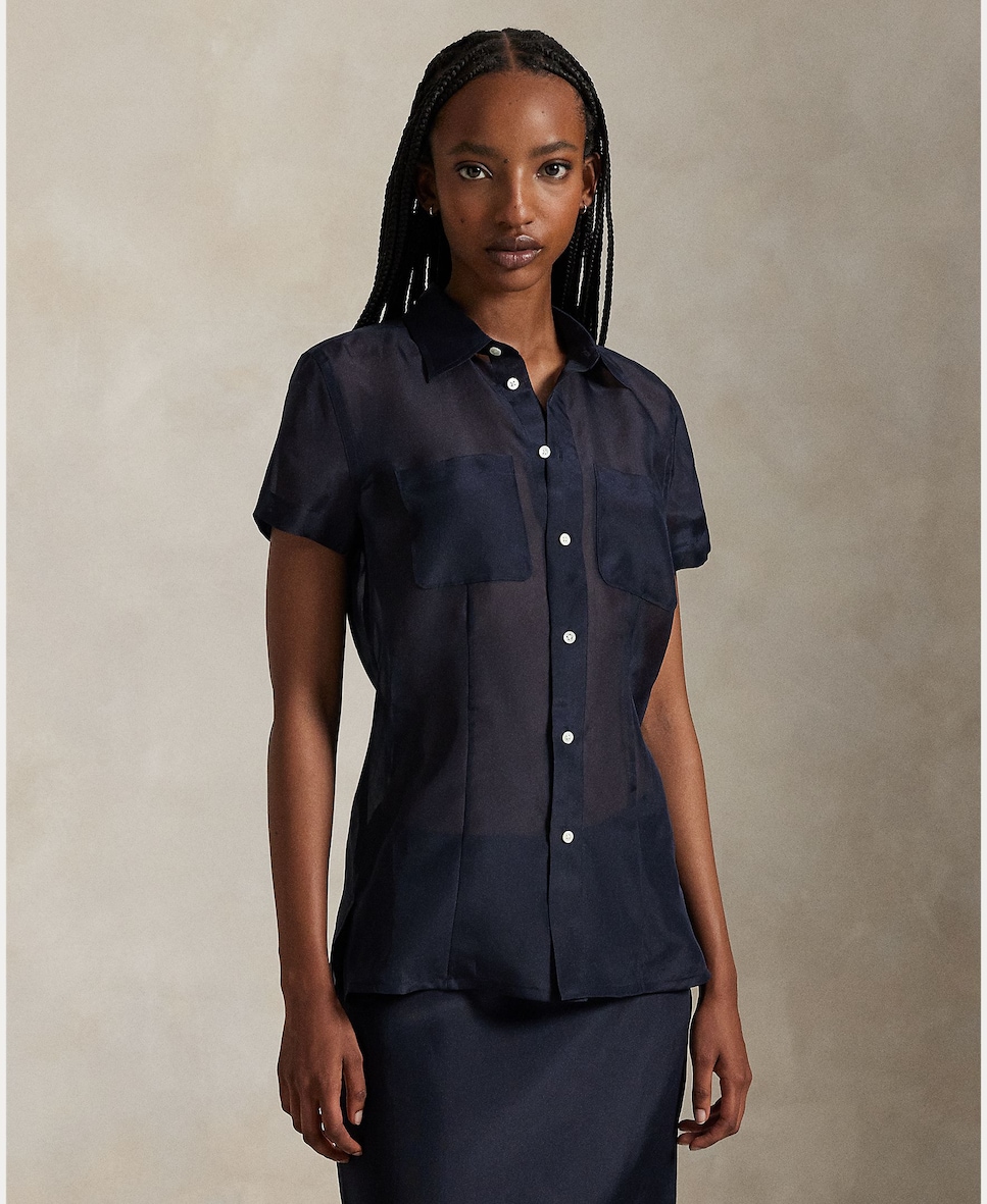 Camisa de Algodão e Seda com Pregas