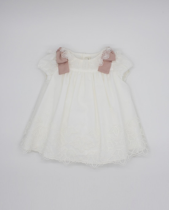 Vestido para Bebé de Tule com Laços em Contraste