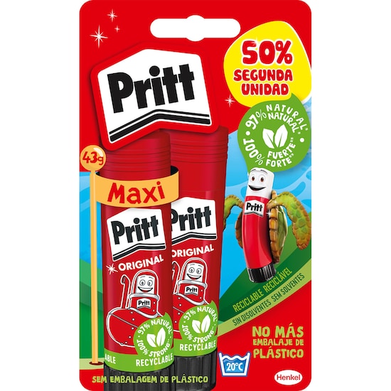 Stick de Cola de Colagem Rápida sem Dissolventes Pack 22 g + 11 g Pritt