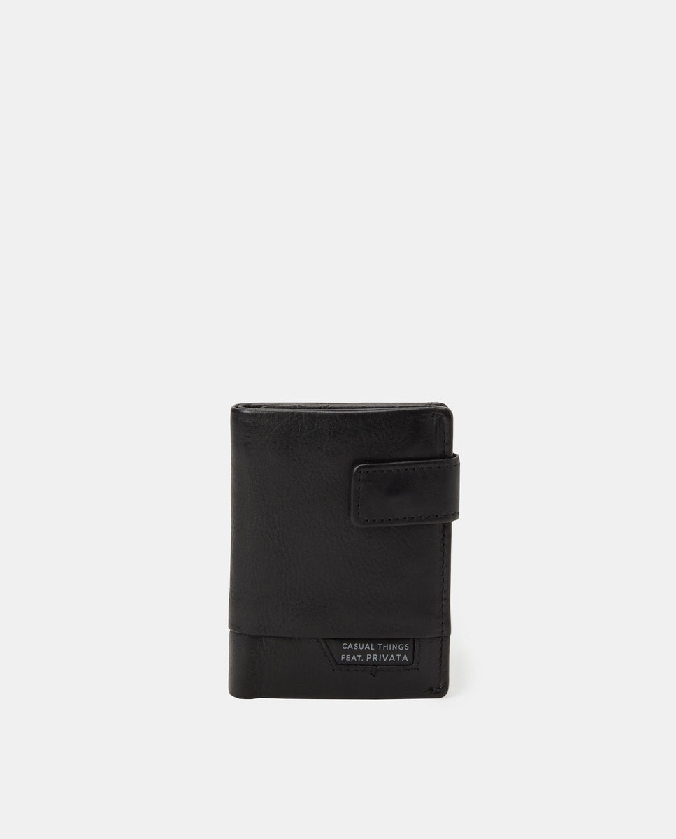 Carteira em pele preta com porta-moedas