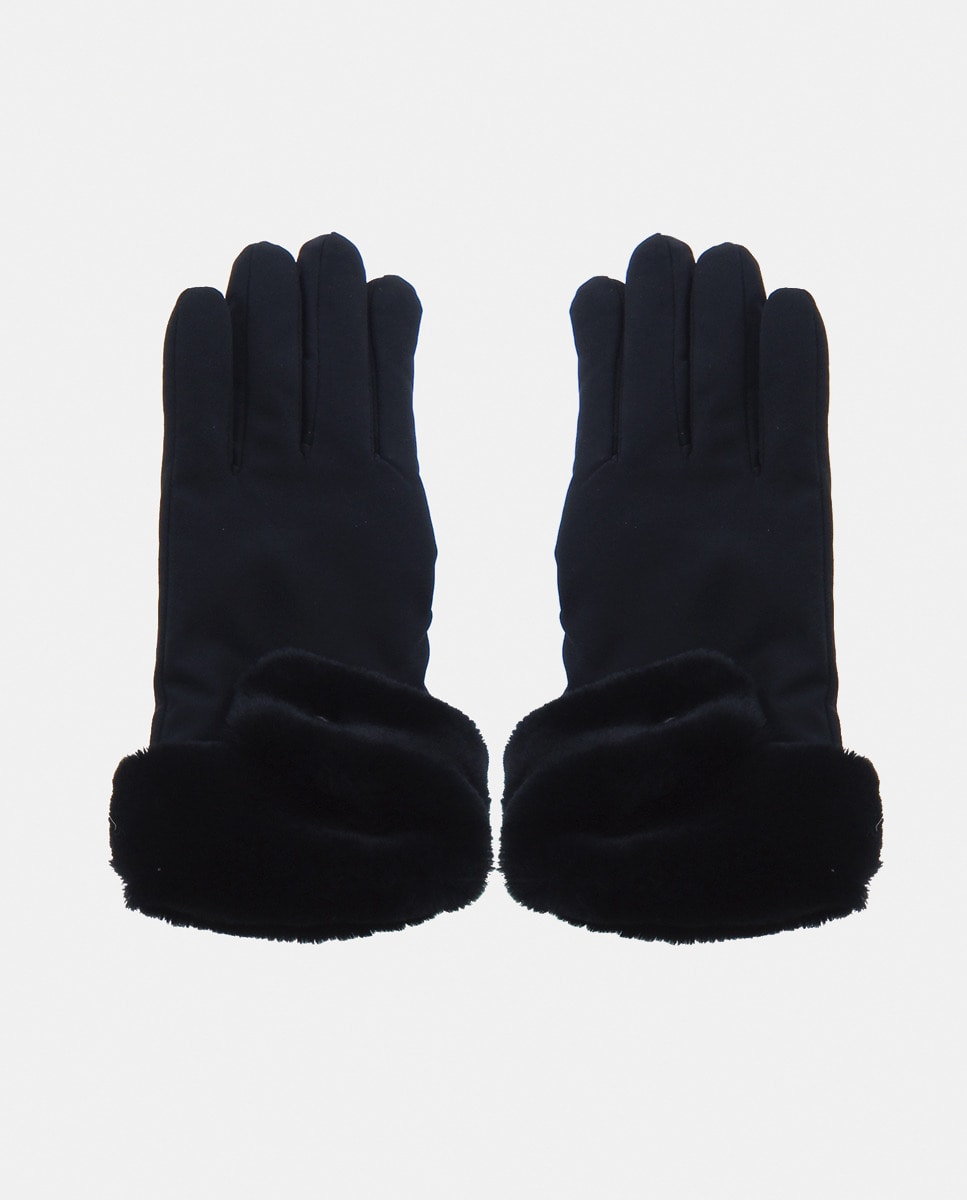 Luvas Lisas com Punho de Pelo - Preto