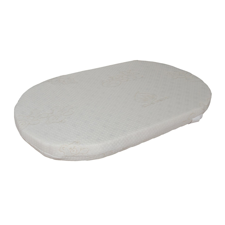 Colchão de espuma ovalado para Mini Berço, em branco. Feito de tecido respirável com um acabamento macio anti asfixiamento. Com espuma de poliuretano que proporciona boa firmeza.
