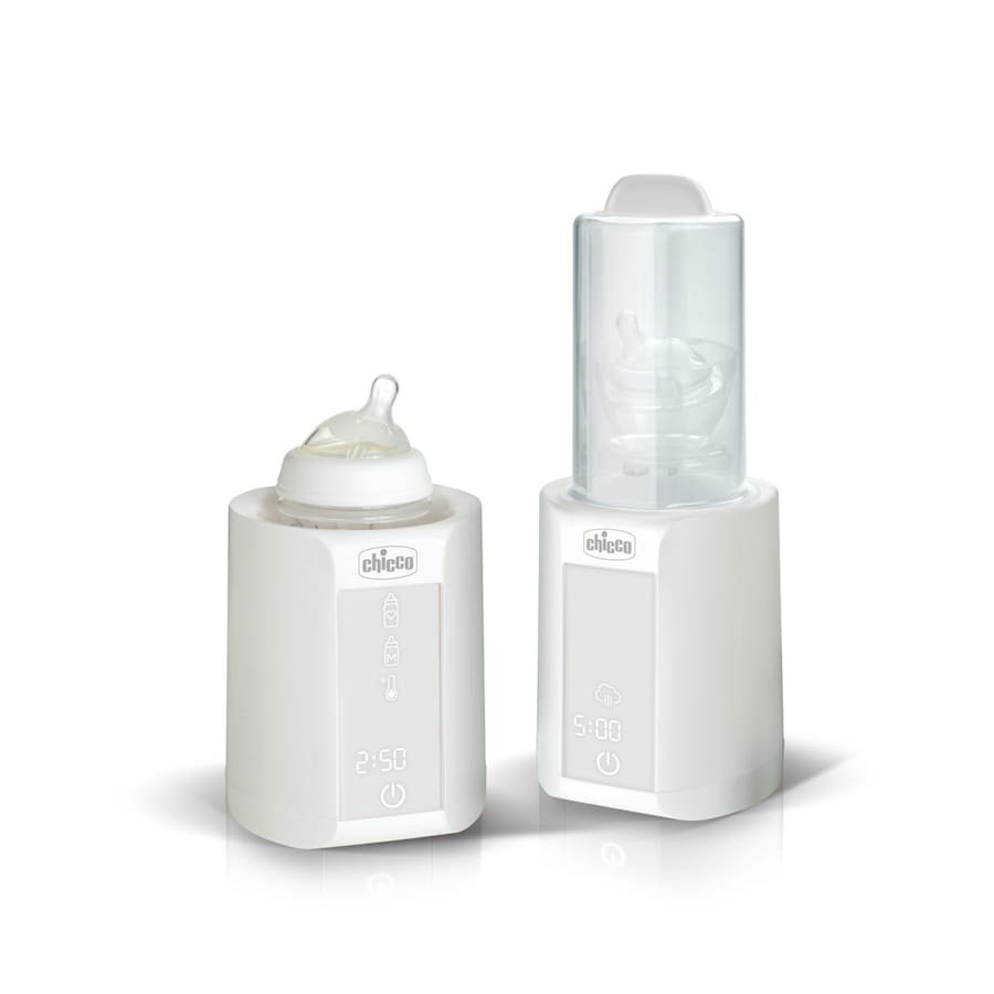O Aquecedor de Garrafas com Esterilizador é compatível com todas as garrafas e frascos Chicco e tem uma função especial para garrafas com uma base destacáveis.