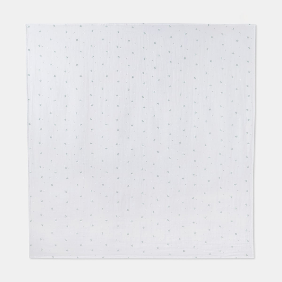 Musselina simples 120 x 120 cm com estampagem de folhas verde-salva