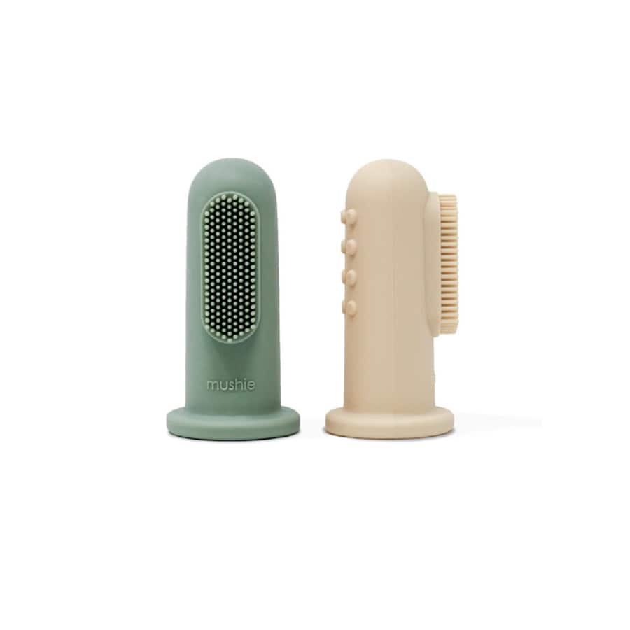 Elimine as bactérias das gengivas do seu bebé com a escova de dentes de dedo Mushie!