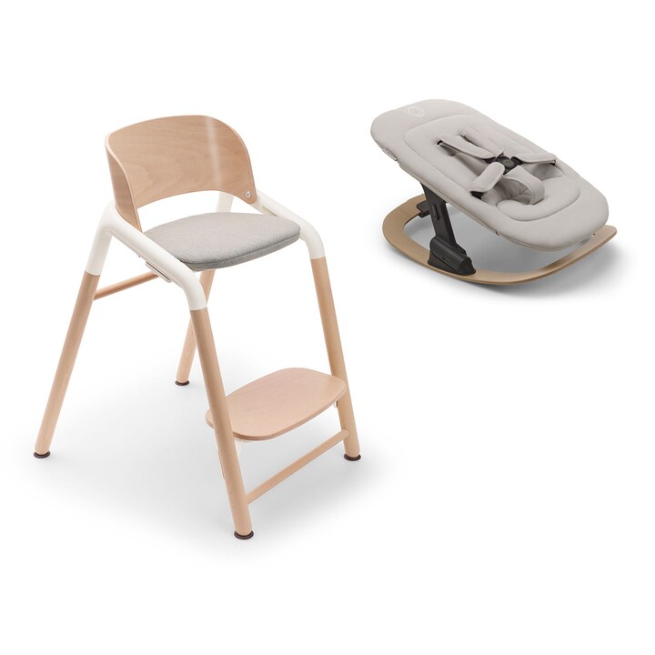 Cadeira alta Bugaboo Giraffe; Estrutura da cadeira de baloiço Bugaboo Giraffe Madeira natural; Pack recém-nascido Bugaboo Giraffe