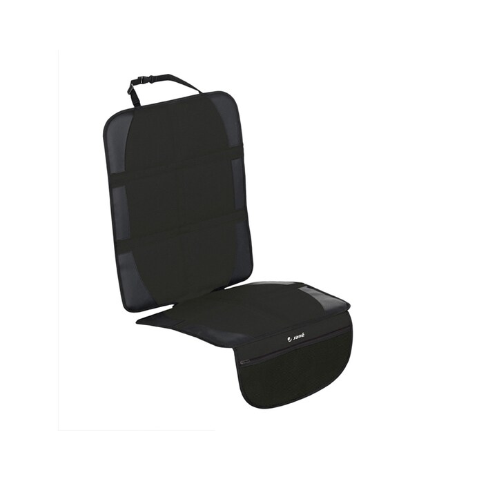 Amovível para lavar e vestir em qualquer altura. Fixa-se às costas do assento com fitas de fixação. Arrumação na parte inferior. Tecido espesso e almofadado. Compatível com todos os tipos de cadeiras auto e isofix CRS.
