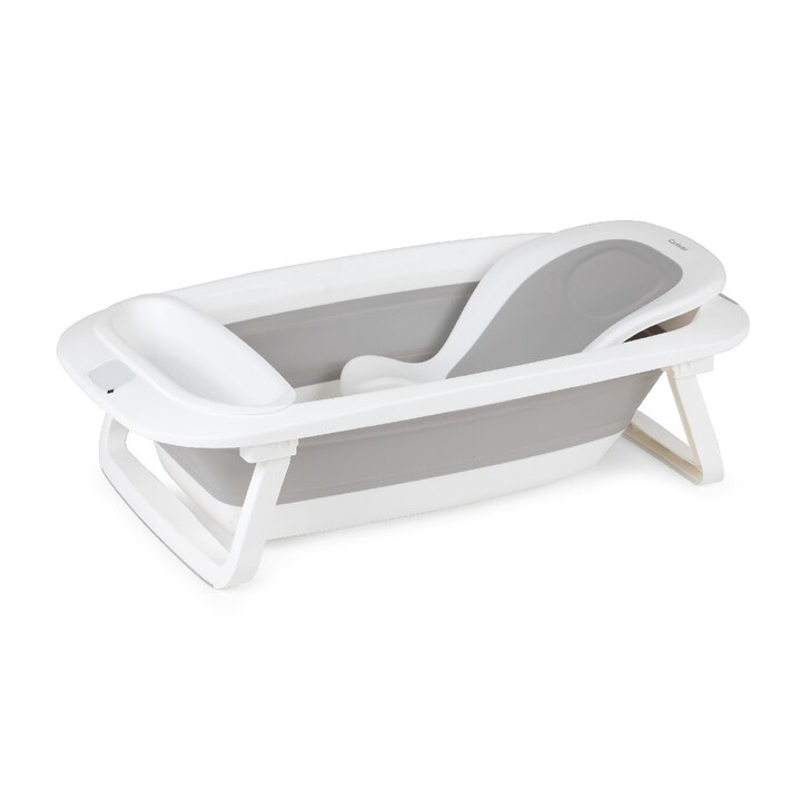 A sua banheira rígida, redutor e saboneteira proporcionam o maior conforto ao bebé, podendo ser dobrada de forma compacta após a utilização.