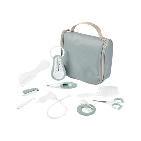 Componha o seu kit de Higiene do Bebé e Cuidados com tudo o que precisa, desde os aspiradores nasais, termómetros, pentes e escovas, champôs e gel de banho, óleos e cremes, escovas e pastas de dentes, recargas para contentor de fraldas e muito mais.