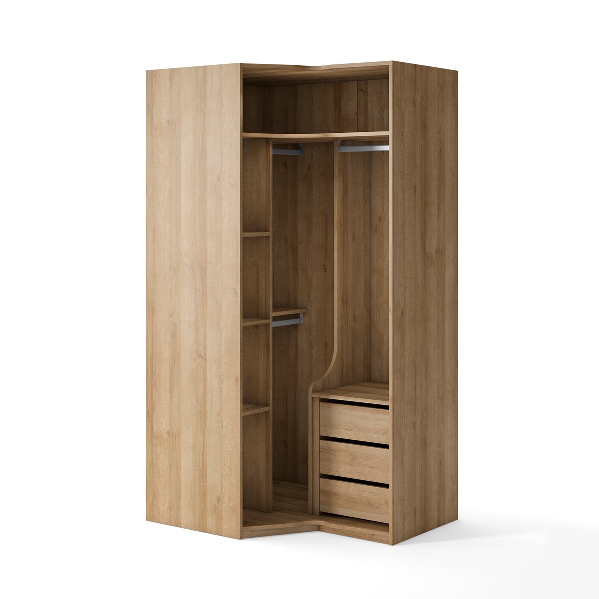 Armário de Canto Direito com 2 Barras, 2 Estantes e Gavetas Mio