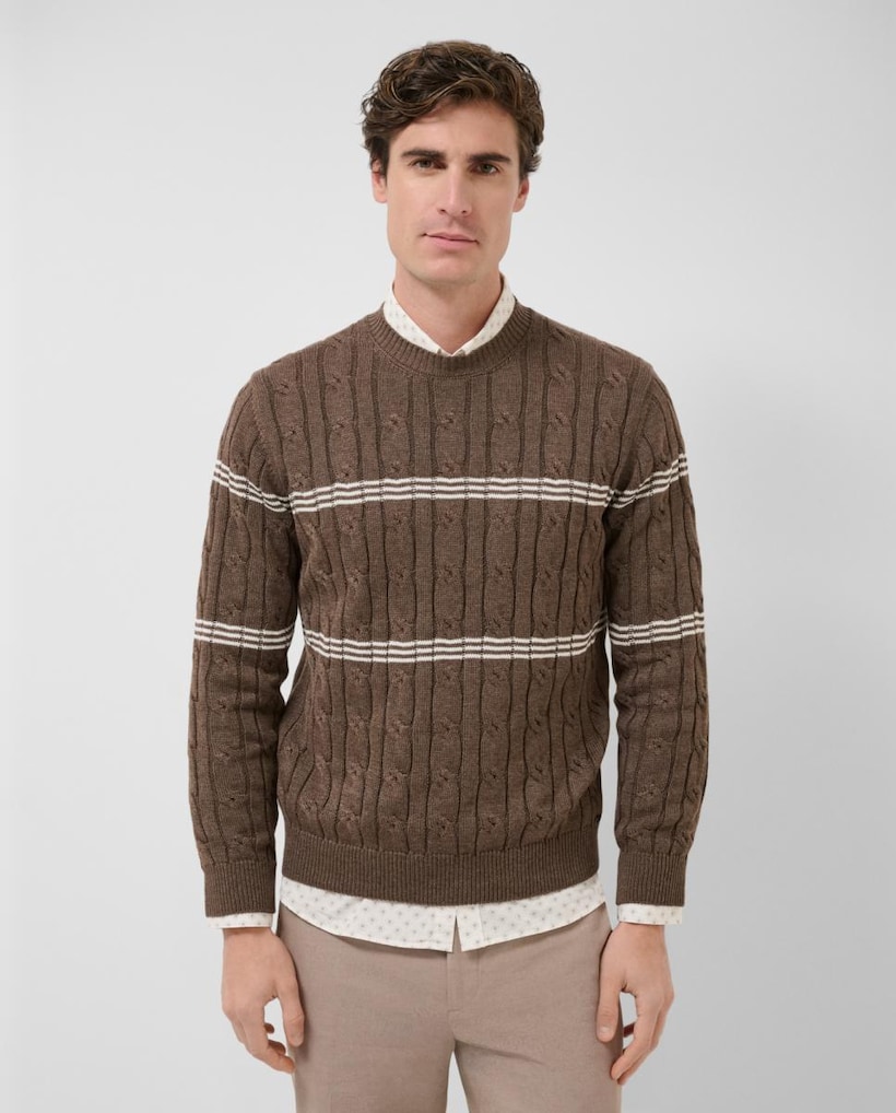 Camisola de Malha do Cabo às Riscas com Gola Redonda