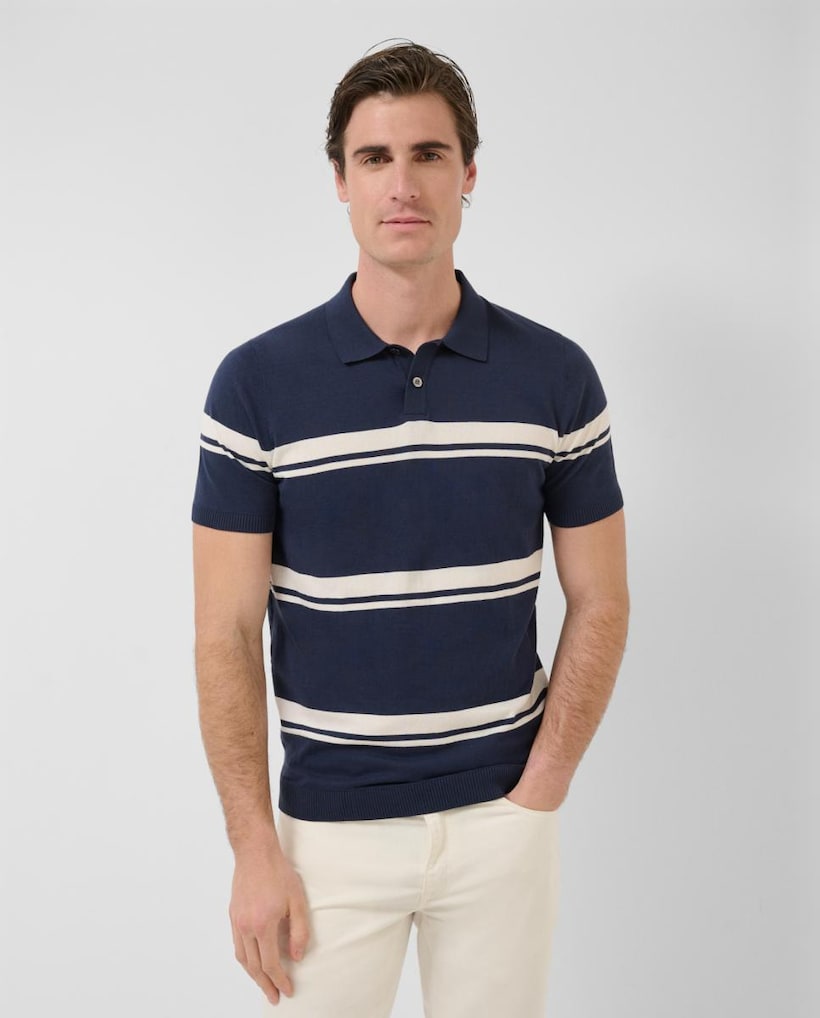 Polo de Manga Curta Tricotado com Riscas