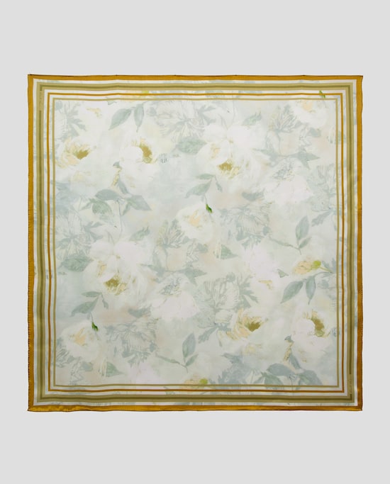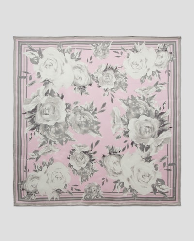 Lenço de Seda com Estampado Floral e Quadrado