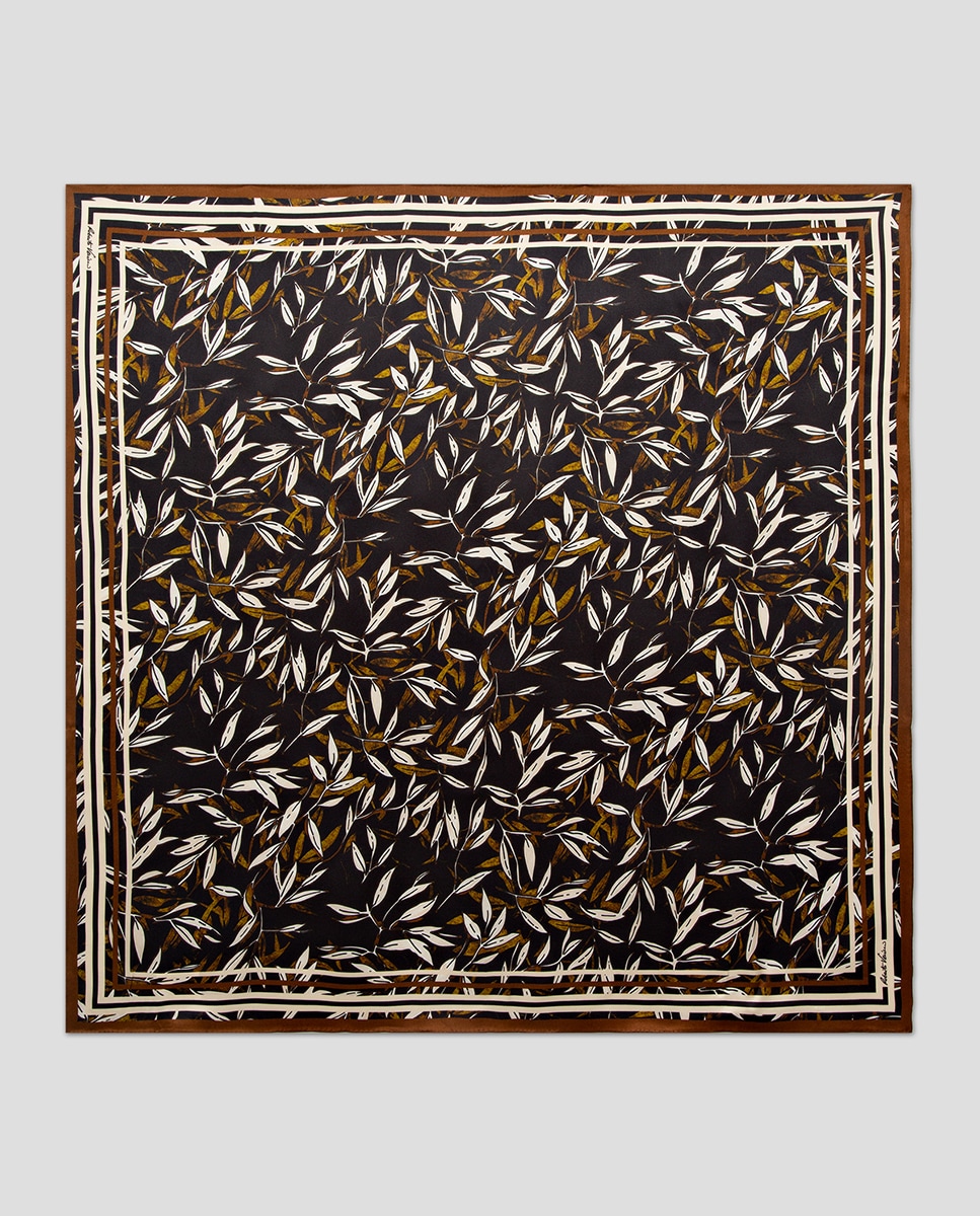 Lenço de Seda com Estampado Vegetal