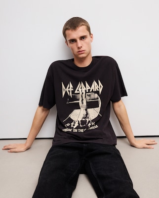 T-shirt de Manga Curta com Estampado de Música Def Leppard