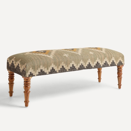Banco de Madeira de Mangueira Estofado Delhi - Verde