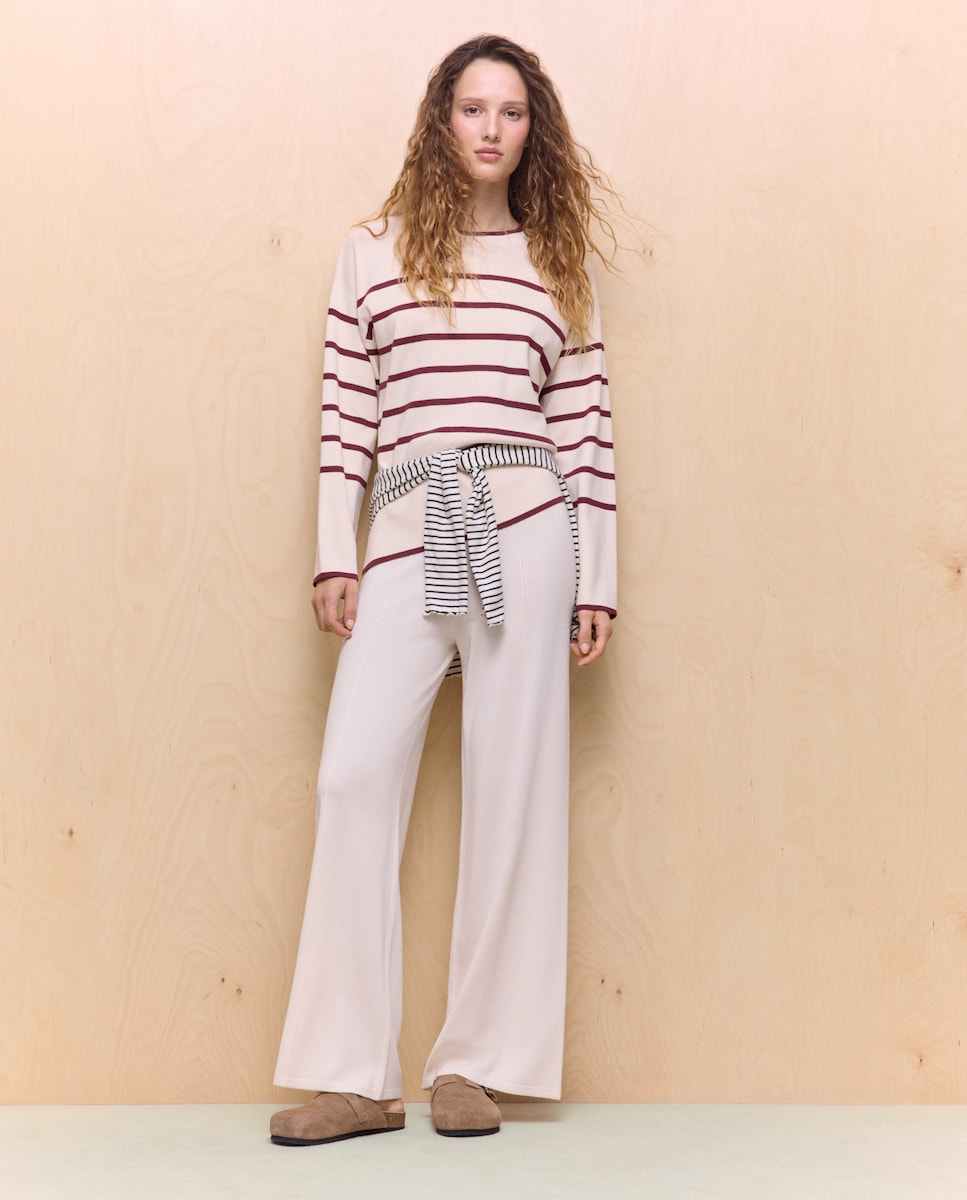 Camisola de Malha às Riscas com Aberturas e Decote Redondo