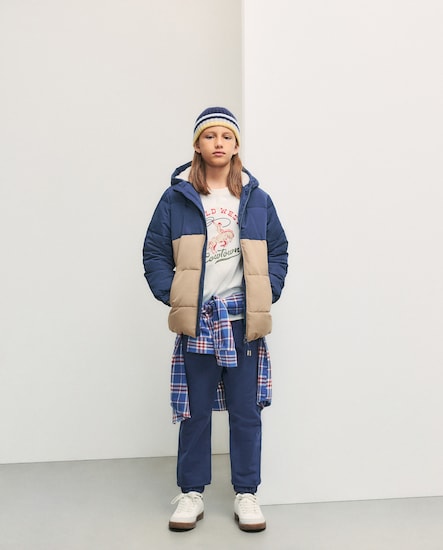 Blusão Acolchoado de Capuz Ligeiro de Penugem RDS com Bolsos e Bolsa