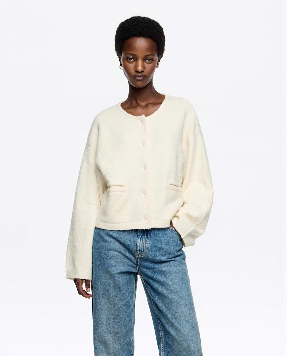 Cardigan Curta com Corte a Direito