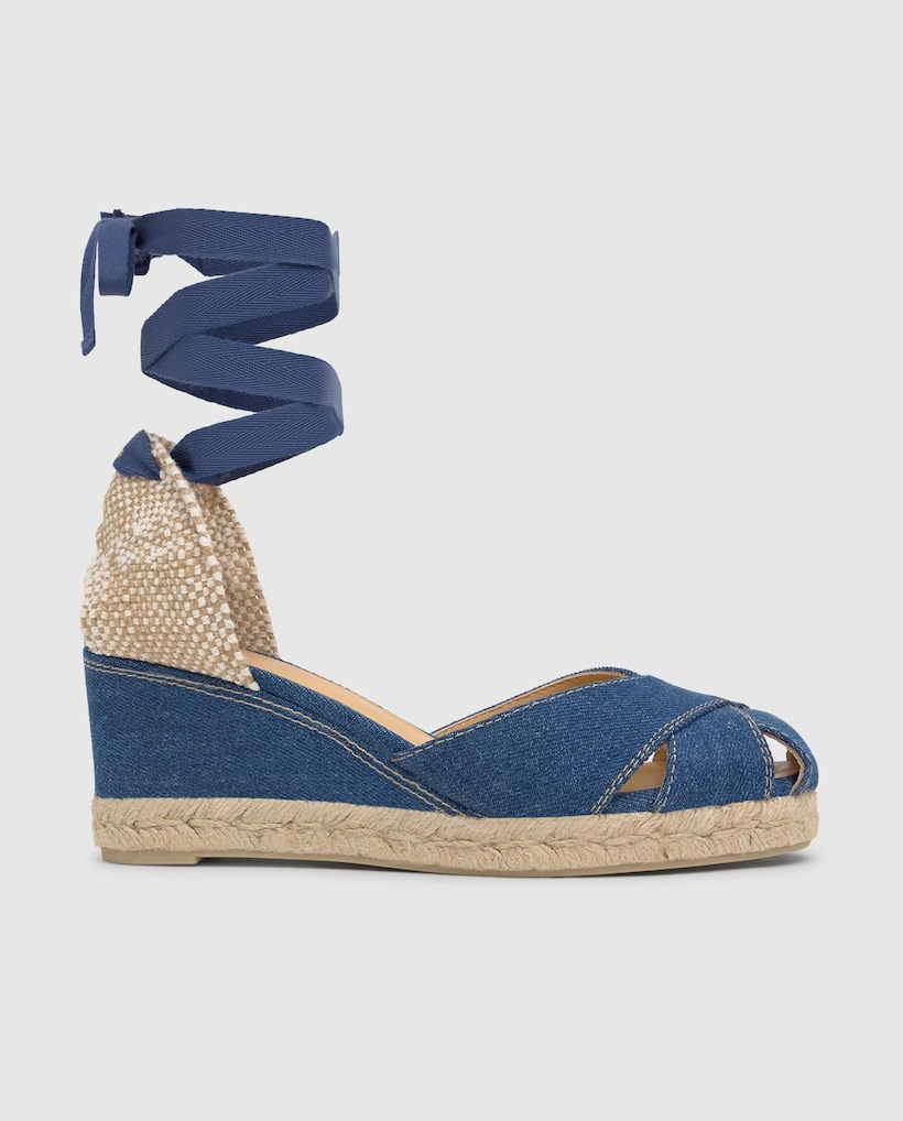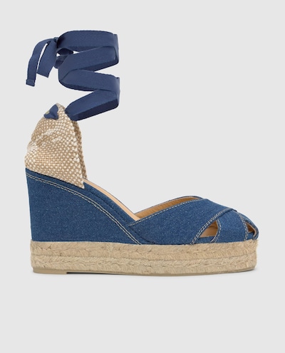 Alpercatas de Cunha Chabeli em Denim com Fecho de Tiras