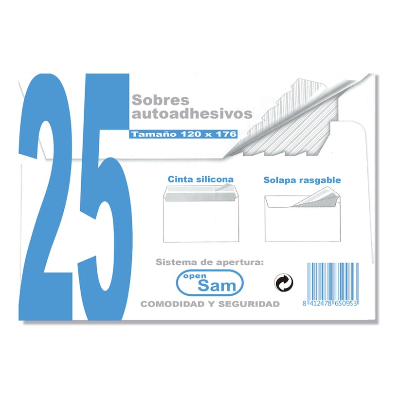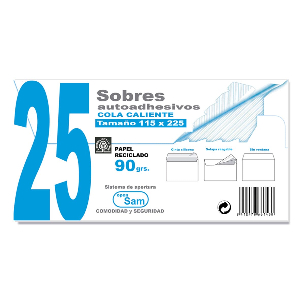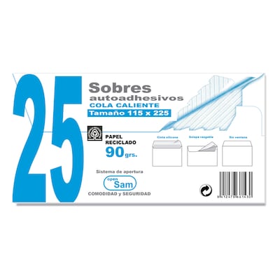 Embalagem de 25 envelopes reciclados AE-115225 com tira de silicone Sam