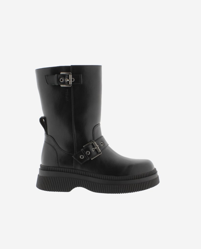 Botas em Preto Monocromo com Sola Grossa e Dupla Tira