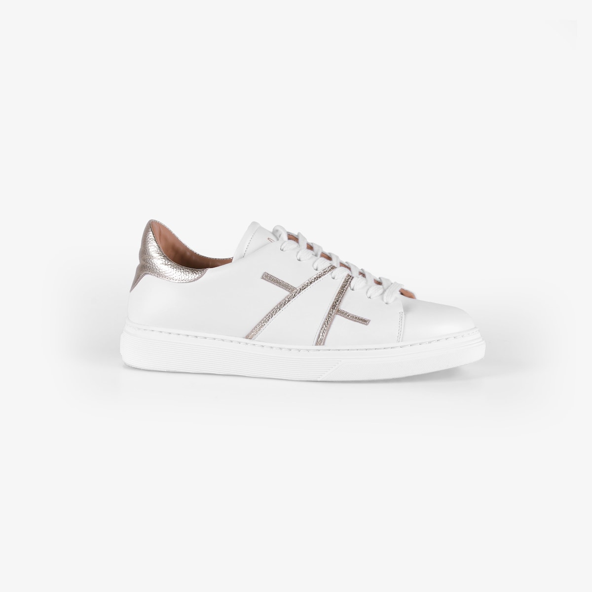 Sapatilhas pele branca e dourada