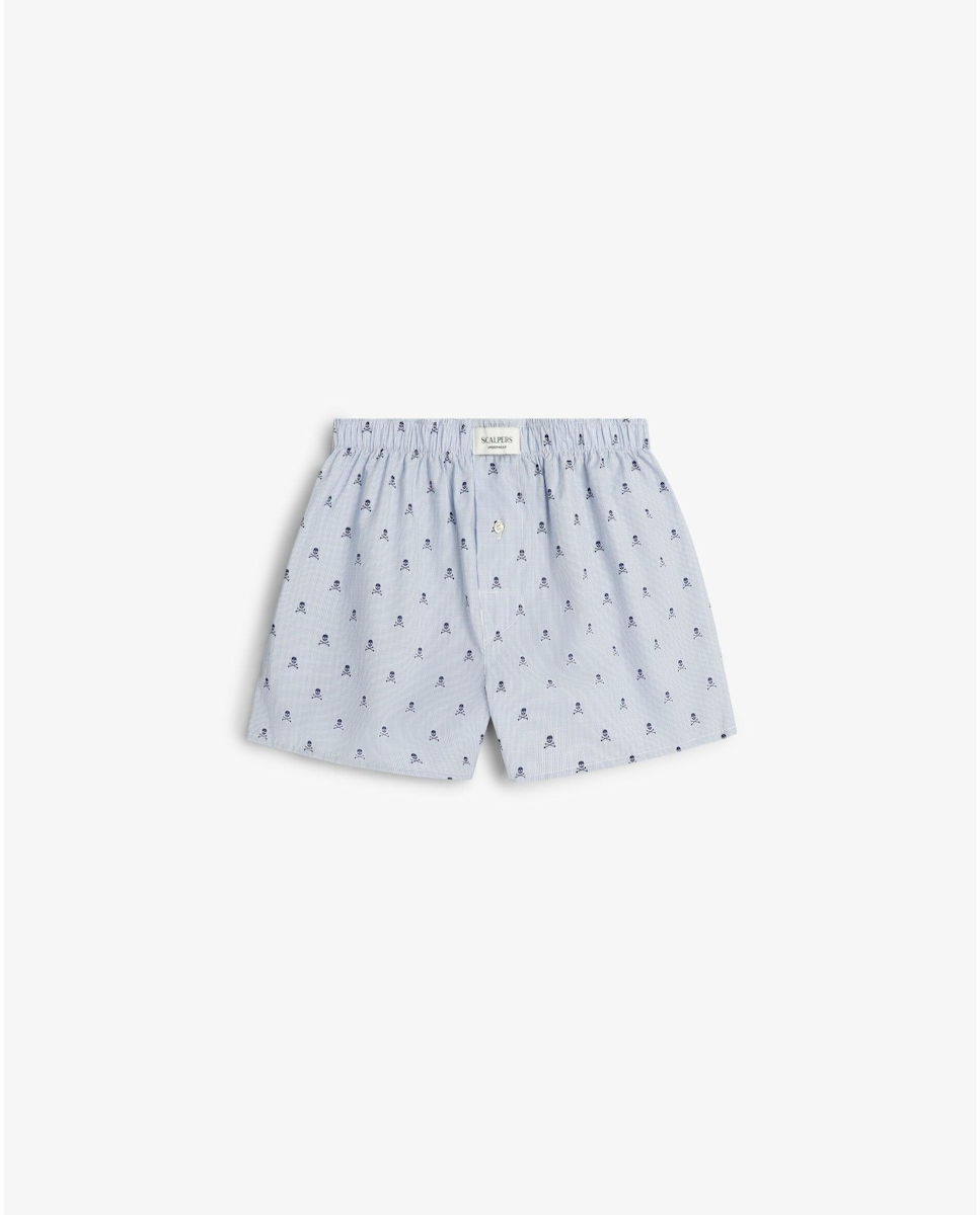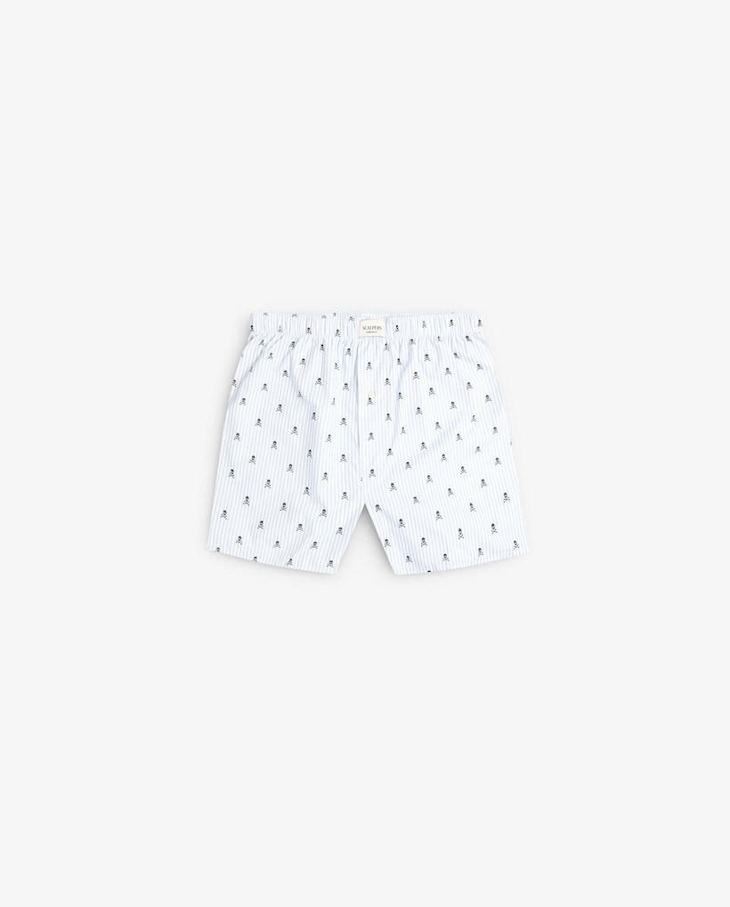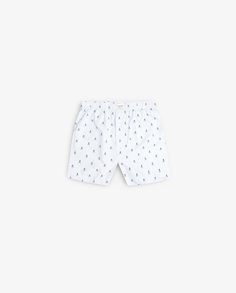 Bóxer de Tecido com Padrão Às Riscas e Caveiras All Over