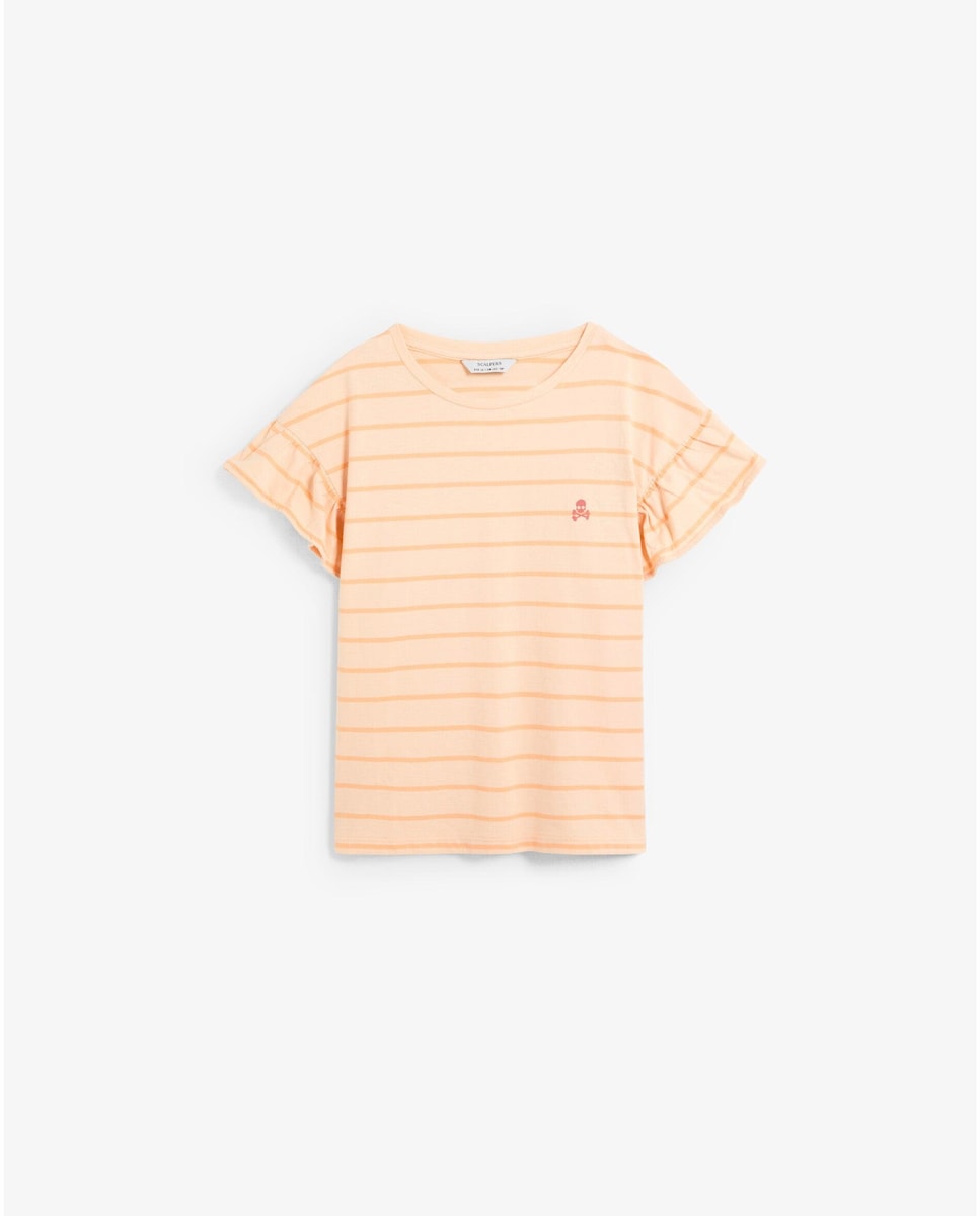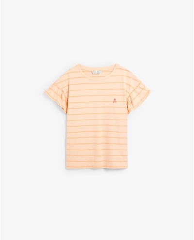 T-shirt Infantil Às Riscas com Folhos nas Mangas