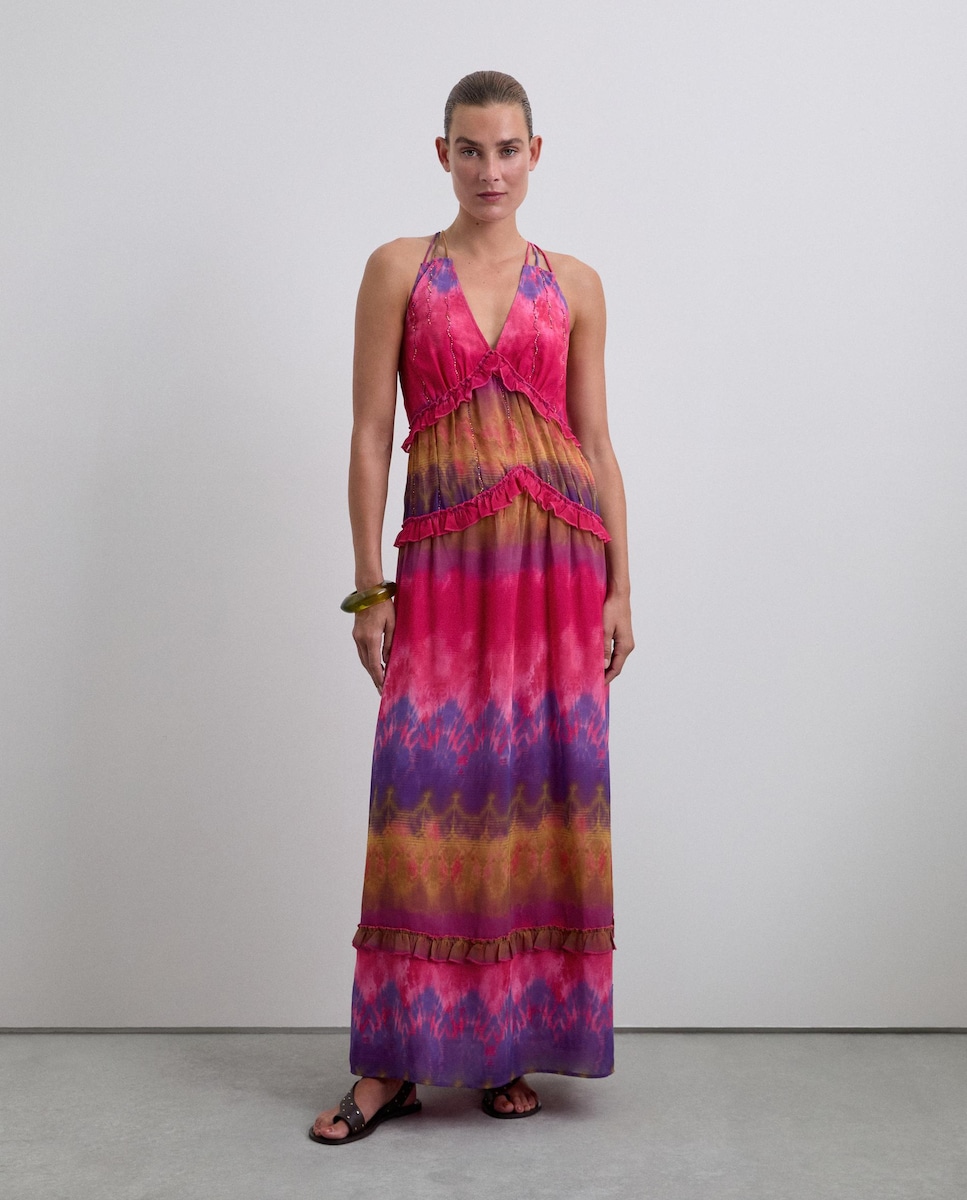 Vestido Comprido Tie Dye com Folhos