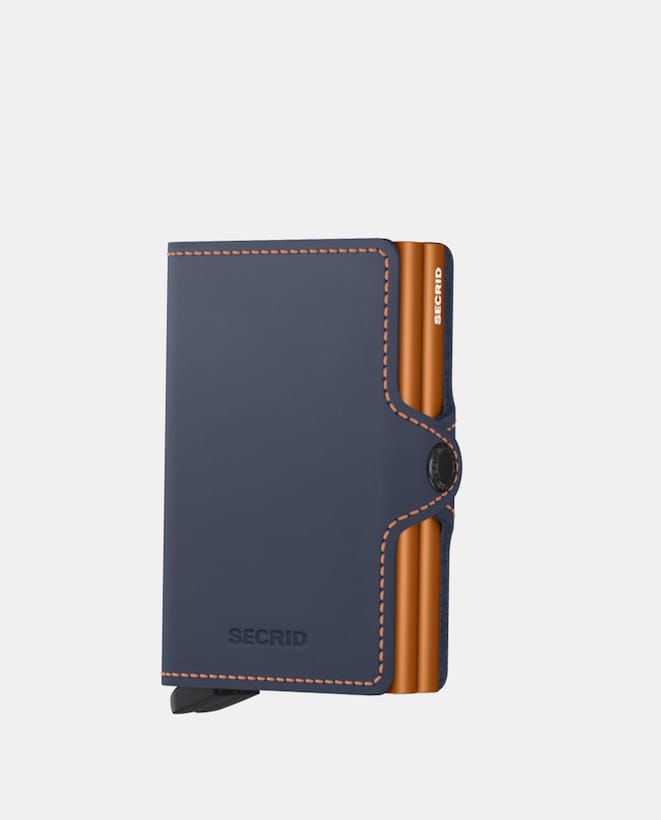 Porta-Cartões Duplo em Pele Mate com Proteção RFID - Azul-Marinho/Laranja