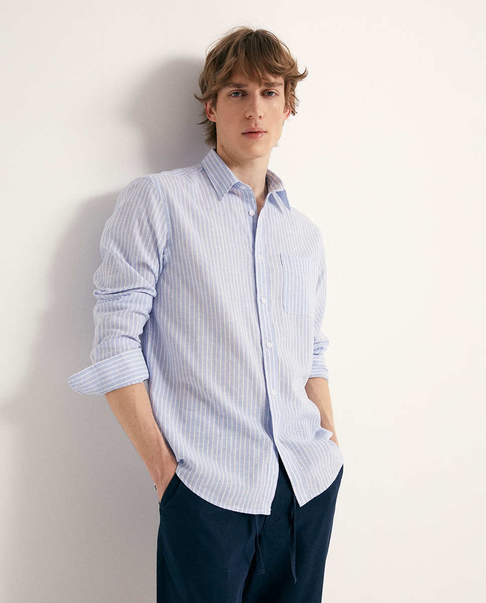 Camisa às Riscas de Linho