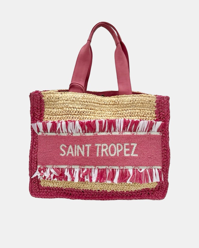 SienaMala de Ráfia Entrançada à Mão com Alças Suaves, Franjas de Ráfia e Decoração "Saint Tropez"Adicionar