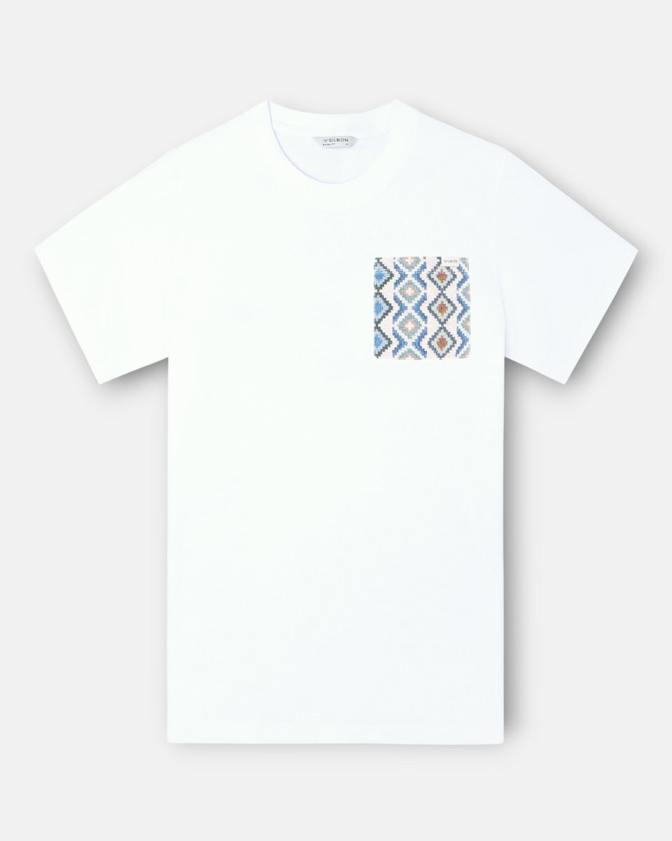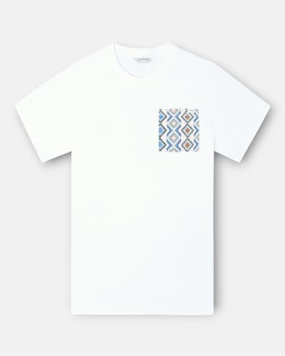 T-shirt com Bolso Étnico em Branco