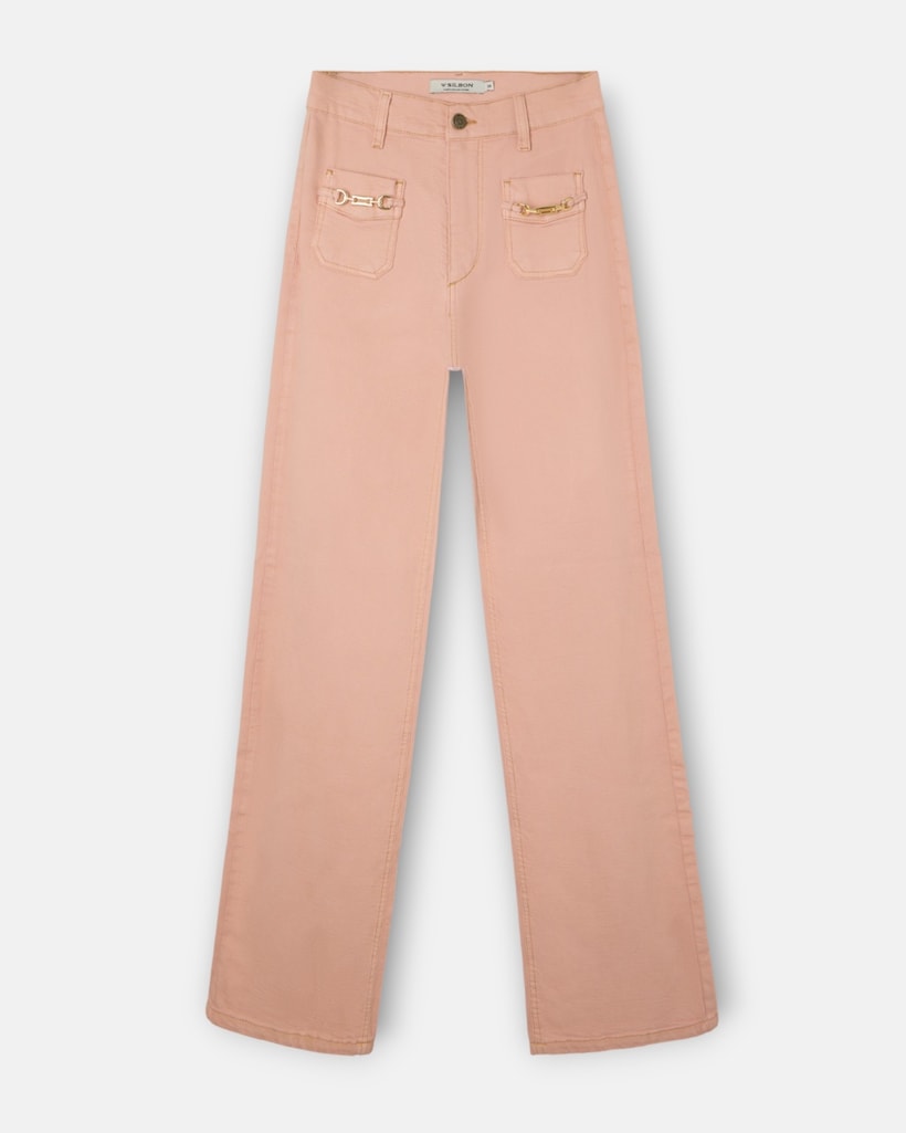Calças Denim Flare com Bolsos