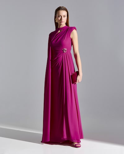 Sonia PeñaVestido Comprido Sirena com Decote Assimétrico, Capa Comprida e Detalhe em CristalAdicionar