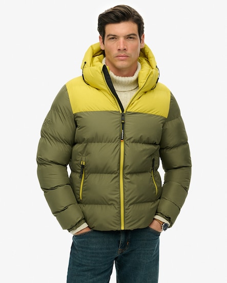 Casaco Acolchoado com Capuz e Color Block