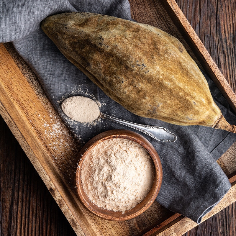 O baobá não é um alimento novo, mas passou de ser local a global. Trata-se do fruto de uma árvore milenar de mesmo nome, típica da África Subsaariana. Nesse território, tem sido consumido especialmente tanto por suas amplas vantagens nutricionais (vitamina C, fibra) quanto pelo seu delicioso sabor naturalmente agridoce, entre toranja, pera e baunilha. Há uma década, chefs profissionais e alguns conhecedores começaram a incorporar a sua polpa em pó em algumas receitas, estimulados pelo seu sabor inovador e pelo seu perfil saudável.
